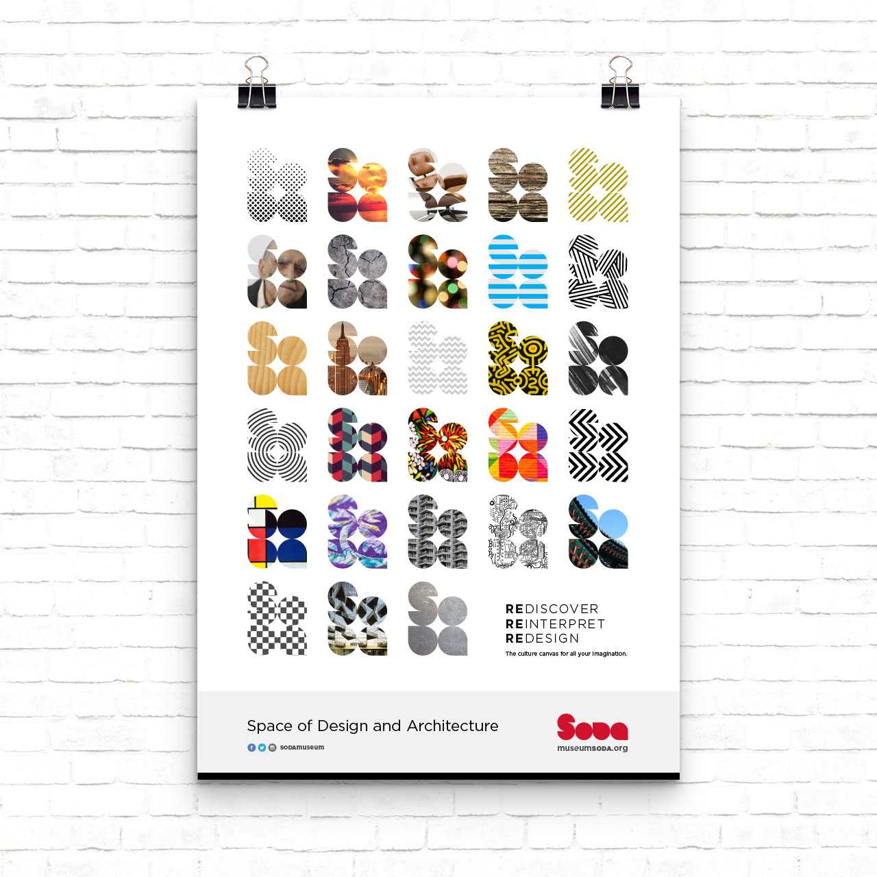 The core philosophy of the project was to rediscover, reinterpret, and redesign elements—often overlooked—in life in order to create unforeseen values. I thought that no monolithic mark could convey such openness and malleability, and wanted to develop not only a logomark but a design system. After a few rounds of pencil sketches, it became very clear we would resort to basic geometry of square and circle. By disassembly and reassembly, just as SoDA's foundational concept, limitless combinations can take place to generate any shape and form. Once the design package was delivered, including a few iterations in motion graphics as a starter, the client took over and started to manage the brand communications themselves.
